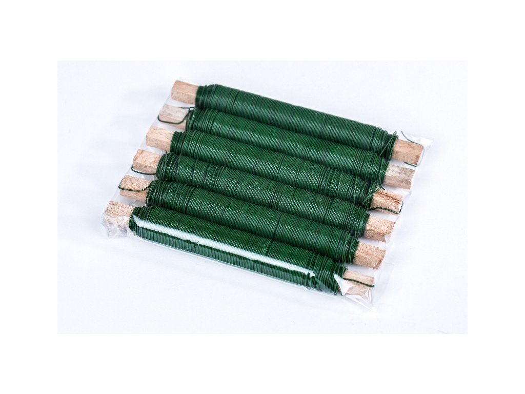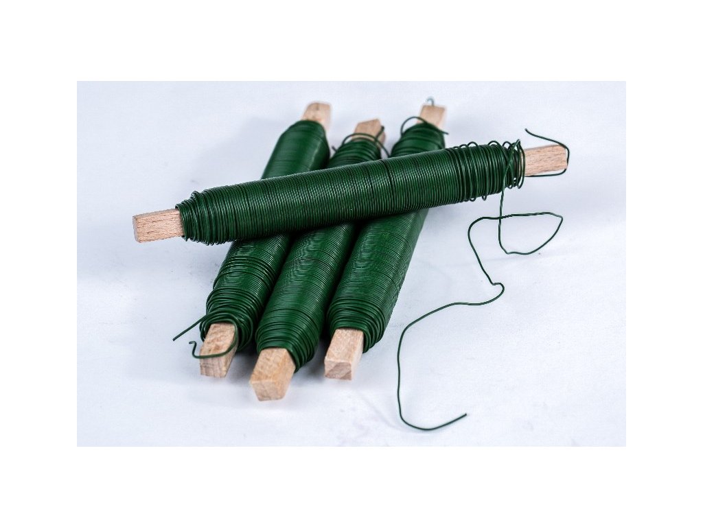 Viazací drôt zelený navinutý na drevenom drievku, ohybný, vhodný na spevnenie čečiny, pri výrobe aranžmánov, vencov, resp.uchytenie stúh, dekoračných materiálov ( plody, gombíky, drev.dekorácie..) atď. Je taktiež vhodný na aranžovanie, kreatívne tvorenie šperkov a iných dekorácií.Dodatočné parametre