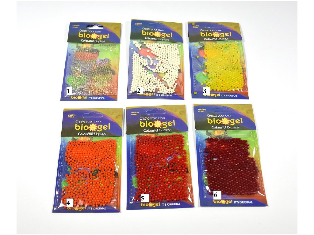 Želatína sú vlastne vodné perly, ktoré máme prevažne v dvoch veľkostiach a v rôznych farbách. Majú schopnosť absorbovať vodu a udržať napr. kvety či hotovú kyticu vo váze dlho čerstvú. Zväčšia svoj objem a hodia sa do váz aj ako dekorácia. Pri objednávaní napíšte o akú farbu máte záujem. Ponuka farieb záleží od dodávateľa a od aktuálneho stavu na sklade. Pri objednávke zadajte číslo farby o ktorú máte záujem.