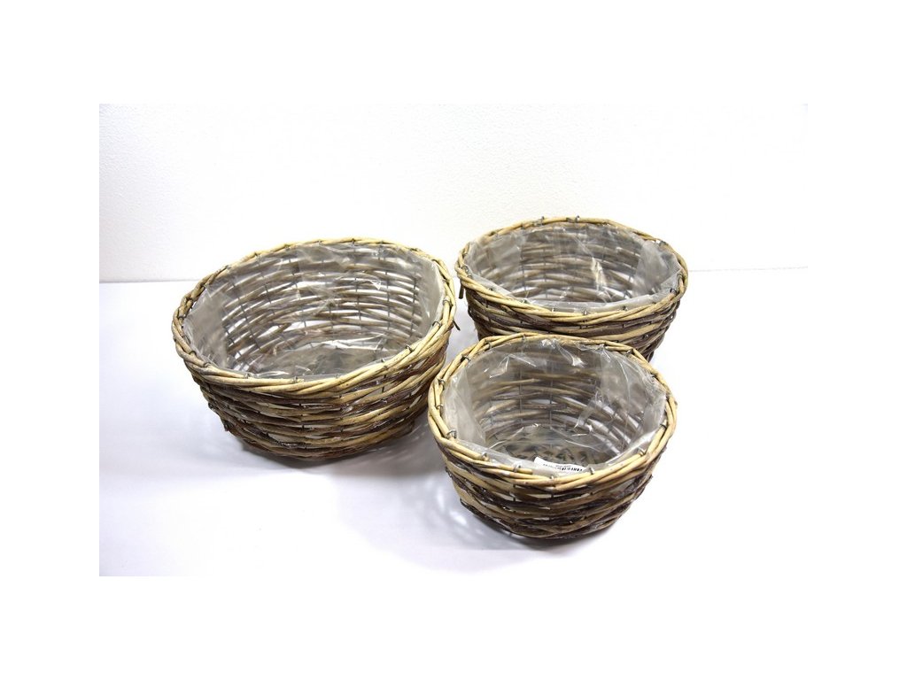 Táto miska je vyrobená z prírodných polených prútov v kombinácii hnedej vymývanej farby na drôtenom základe. Je vystlaná z vnútra igelitom takže je vhodná aj na "mokré" aranžovanie.