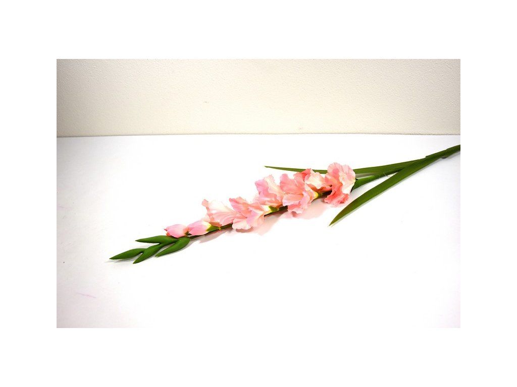 Umelý gladiolus je stonka z listami a kvetmi na jednej stonke tak ako je na fotke. Môžete ju použiť v celku do vyššej vázy, alebo naaranžovať. Samotný rozmer jedného kvetu je 7cm.