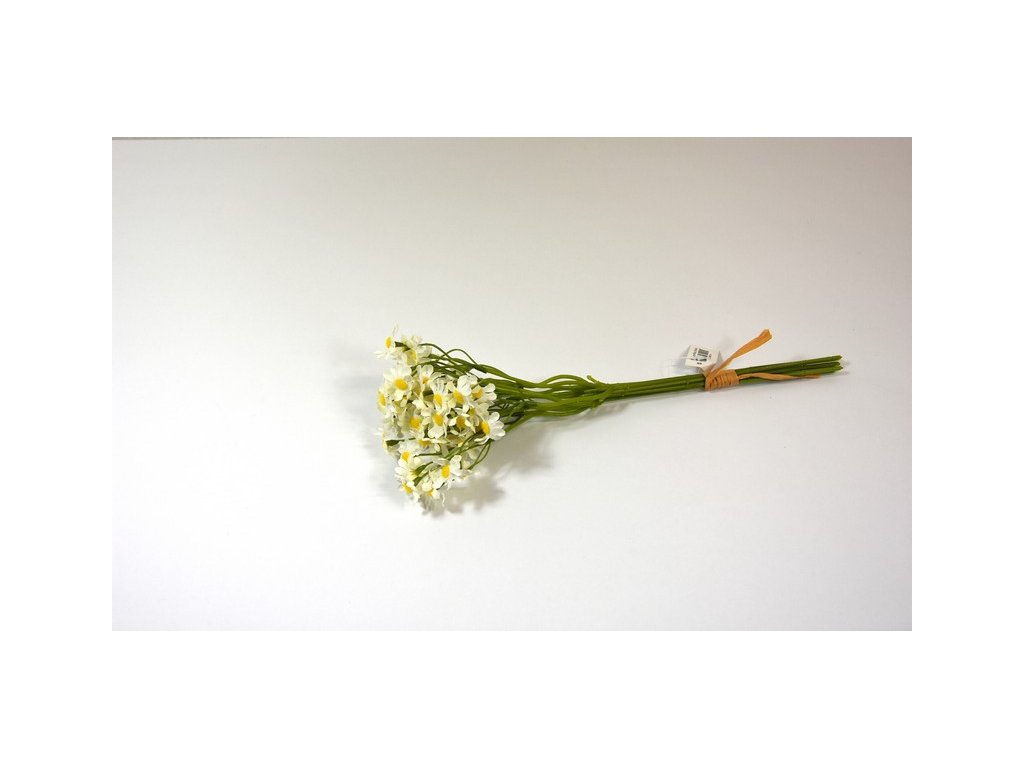 Umelá kytička margarétky je súbor viacerých kvetov na stonke. Môžete ju použiť v celku do vázy, alebo jednotlivé časti rozdeliť (odstrihnúť) a následne použiť na aranžovanie vencov, kytíc alebo rôznych iných ikebán. Šírka kytičke je cca 10-12cm.