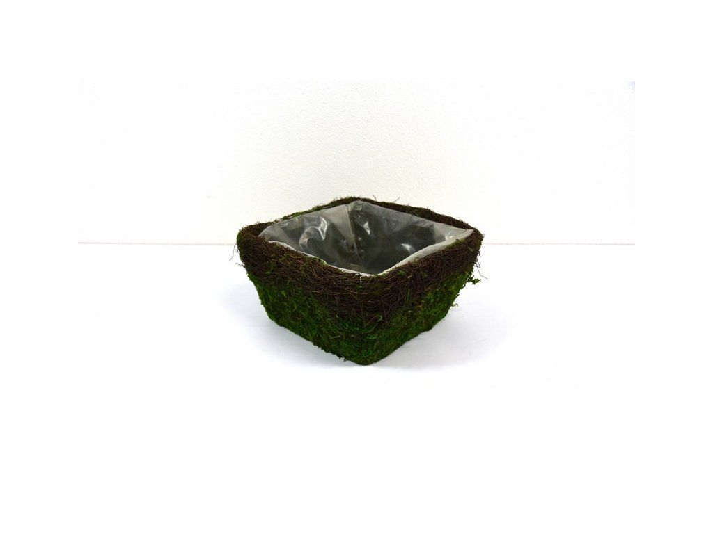 Miska je vyrobená z prírodných materiálov na kovovej konštrukcii a je obalená machom a prútom. Do vnútra tejto misky je vložený igelit, čím je vhodná aj na mokré aranžovanie, prípadne výsadbu plytko koreniacich rastlín alebo cibuľovín.