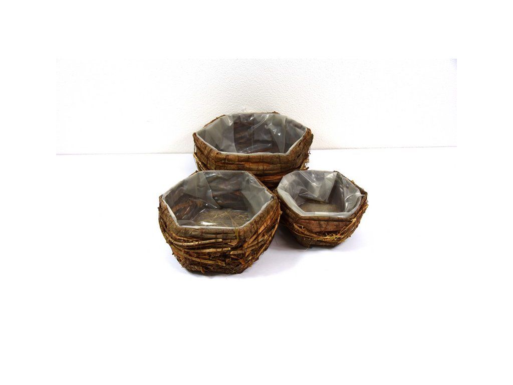 Miska je vyrobená z kôry a liany na kovovom základe. Do vnútra tejto misky je vložený igelit, čím je vhodná aj na mokré aranžovanie, prípadne výsadbu plytko koreniacich rastlín alebo cibuľovín. Miska je hlbšia ako ostatné misky, pozrite rozmery.