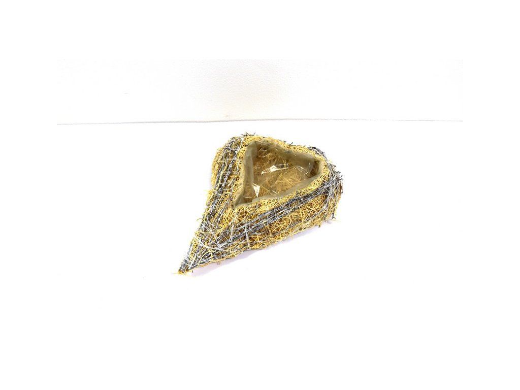 Miska v tvare srdca je vyrobená s drevitej vlny a prútia na kovovej konštrukcii. Do vnútra tejto misky je vložený igelit, čím je vhodná aj na mokré aranžovanie, prípadne výsadbu plytko koreniacich rastlín alebo cibuľovín.