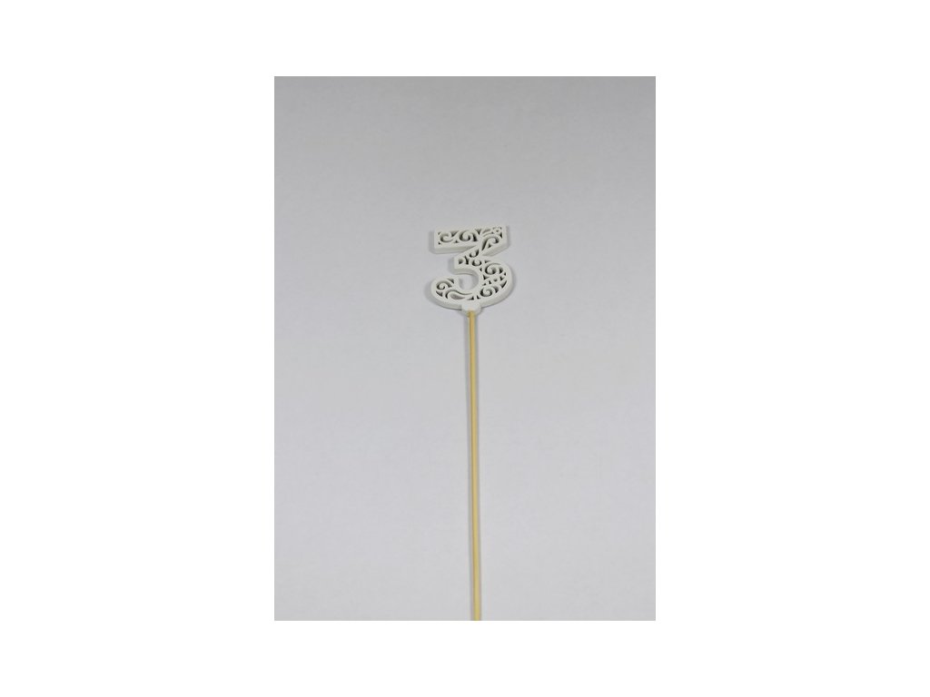 Zapichovačky čísla sú v balení po 5ks. Sú vyrobené z drevotriesky so špajdlou a vybielené. Vhodné zapichnúť do jubilejnej či narodeninovej kytice podľa potreby, či narodeninovej torty (čísla sú nejedlé) alebo zapichnúť ku kvetu do kvetináča.Dodatočné parametre